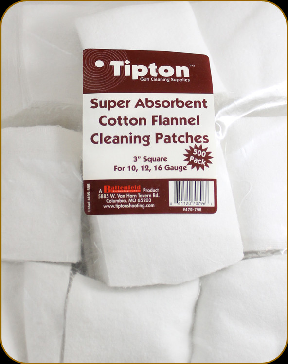 10, 12, 16 GA SIZE: 3" SQUARE 100% COTTON FLANNEL PATCHES, PRECISELY CUT TO THE CORRECT SIZE FOR USE WITH TIPTON® JAGS. WHEN USED WITH SLOTTED TIP, CHOOSE THE NEXT SIZE LARGER FOR OPTIMUM PERFORMANCE.